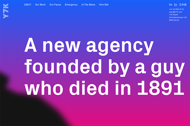 Kaleidoscopic gradients were everywhere in 2017, and they aren’t going anywhere in 2018. Zurich-based agency Y7K illustrates a perfect example of how to make this two-tone effect look fresh and modern, with their full-screen, gradient-washed homepage.