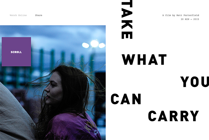 Freeing text from its usual horizontal alignment and placing it vertically on a page adds some refreshing dimension. Take this example from director Matt Porterfield, which mixes horizontal and vertical text alignments on an otherwise very simple page.