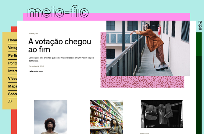 Staggered, stacked layers of color add depth and texture to a simple site layout, as seen in this stylish example from the São Paulo-based team behind Melissa Meio-Fio.
