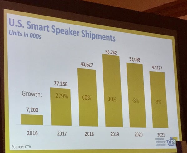 Smart speakers, for example, were named as some of the heaviest hitters in the CTA’s Consumer Tech Industry Forecast, with a predicted revenue of $3.8 billion (an increase of 93%), and 43.6 million units sold (+60%).