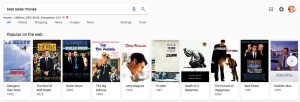 Here’s an example of how a carousel result would look for a topic related to sales: